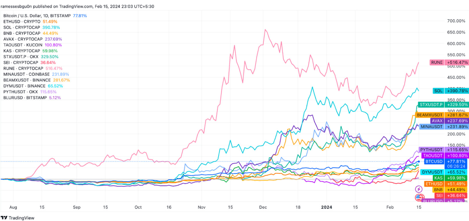 - Solana (SOL) - Solana has continued its remarkable run of 2024, with momentum soaring so far. Regardless of the recent network shutdown, confidence in SOL has surged through the roof, with SOL registering a yearly high of $118 on the 15th of February. The past two weeks have seen SOL register an increase of 22%, with market watchers suggesting that SOL is undergoing a parabolic recovery and could test the resistance at $130 in the next few days.