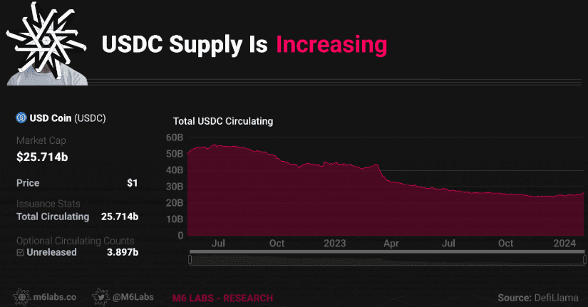 The supply of USDC appears to be increasing once more, with a recent surge of over $1B. Will USDC potentially challenge the dominance of USDT in the future, as it once seemed likely? Only time will tell.