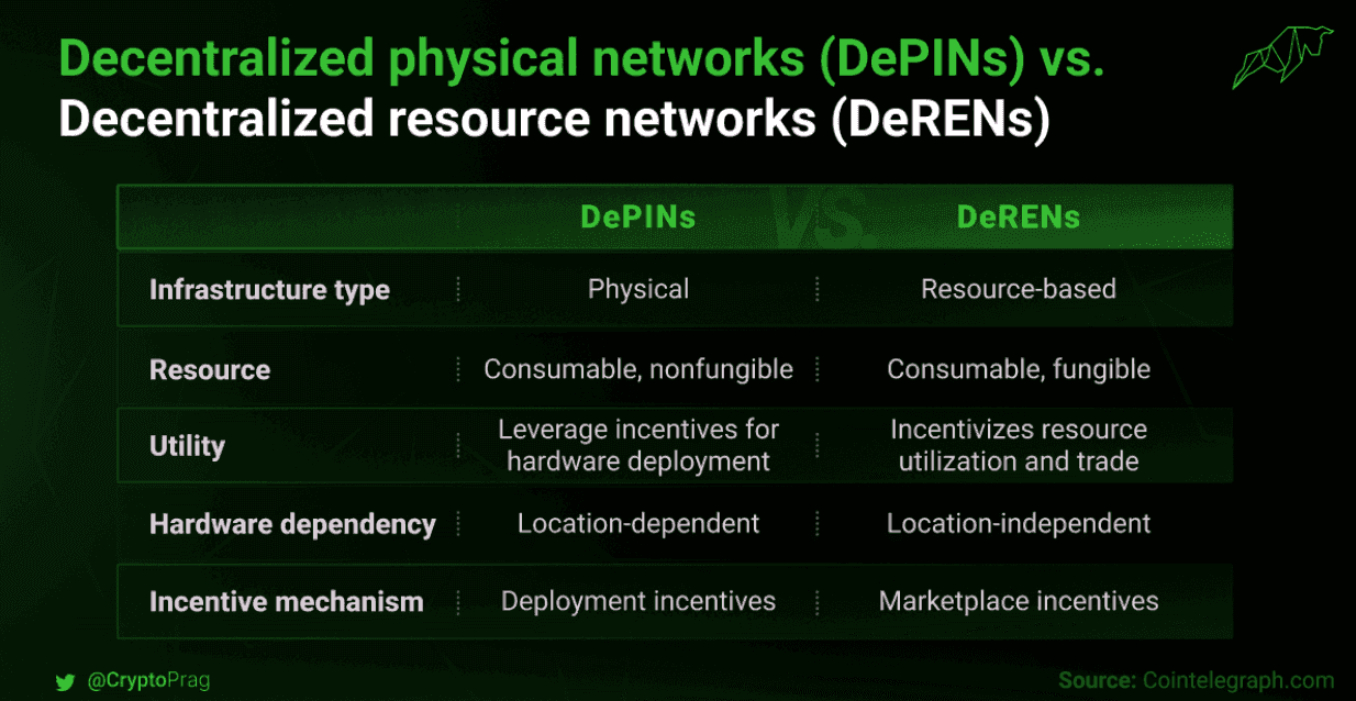 DePIN (Decentralized Physical Infrastructure Networks) and DeREN (Decentralized Resource Networks) are integral to the evolving narrative of AI and crypto, offering groundbreaking approaches to decentralization that extend beyond digital transactions into the physical and resource-based domains.